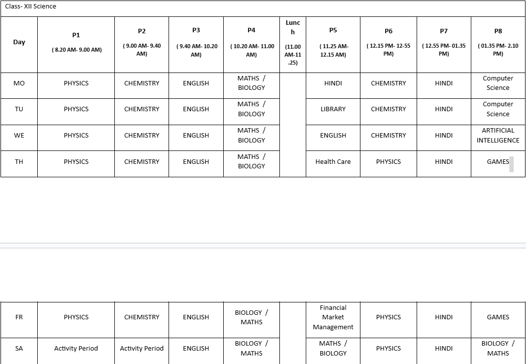 Class XII Science