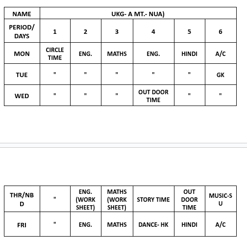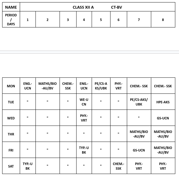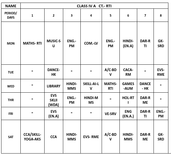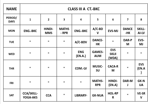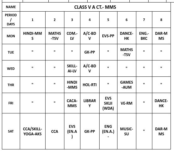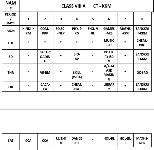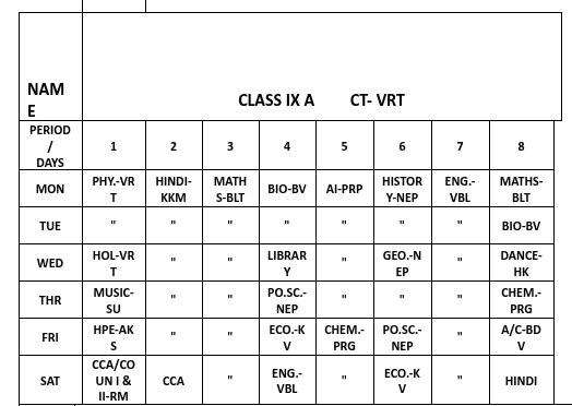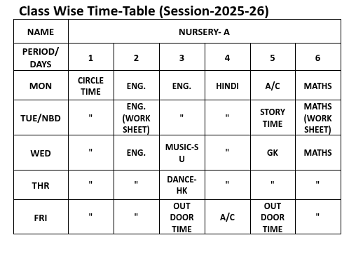 ABPS Baikunth Time Table