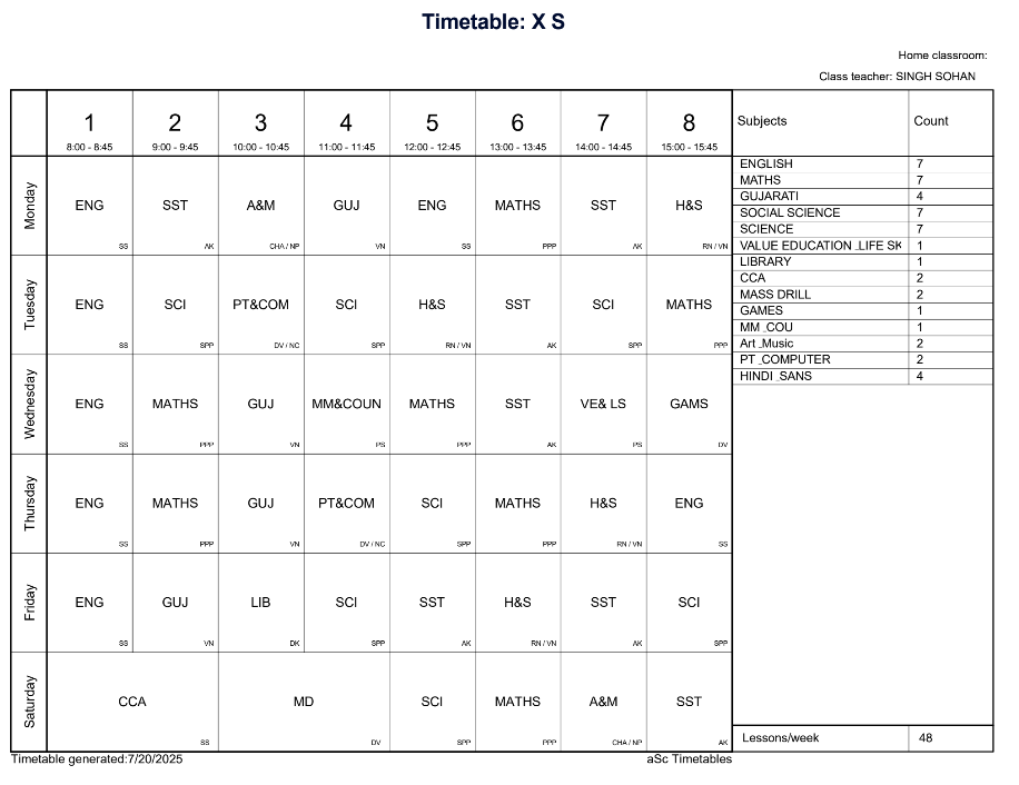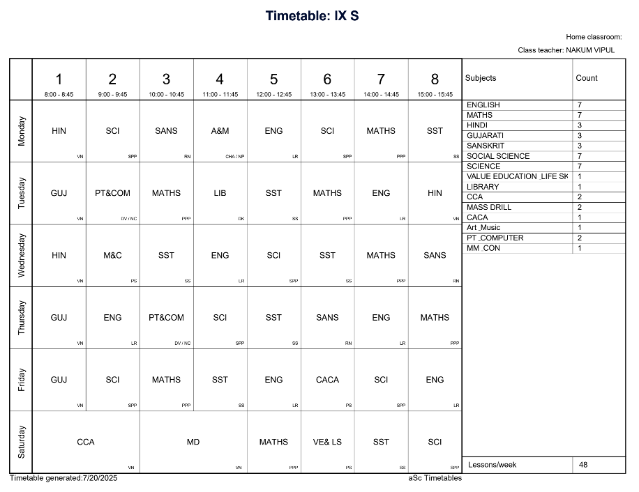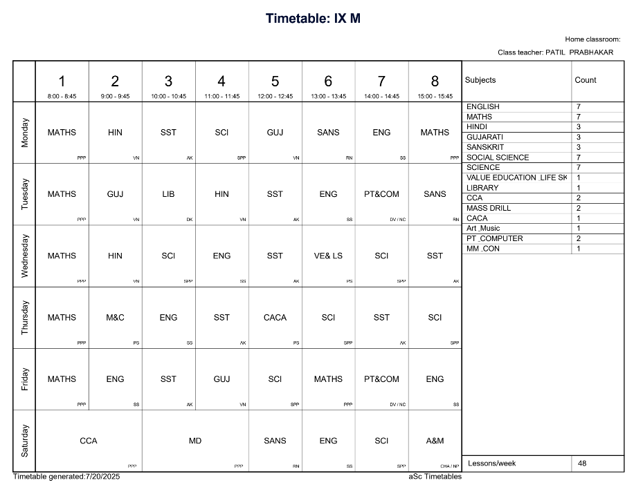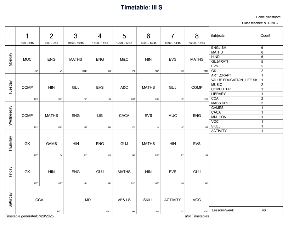 Class Timetable