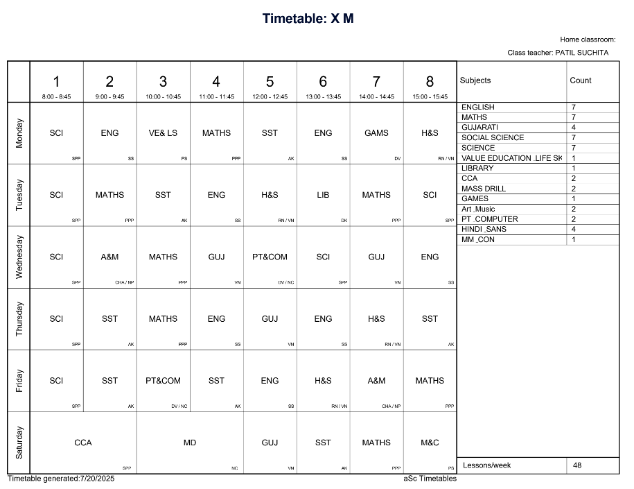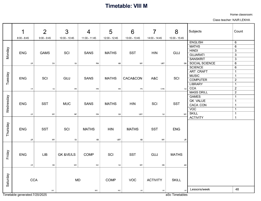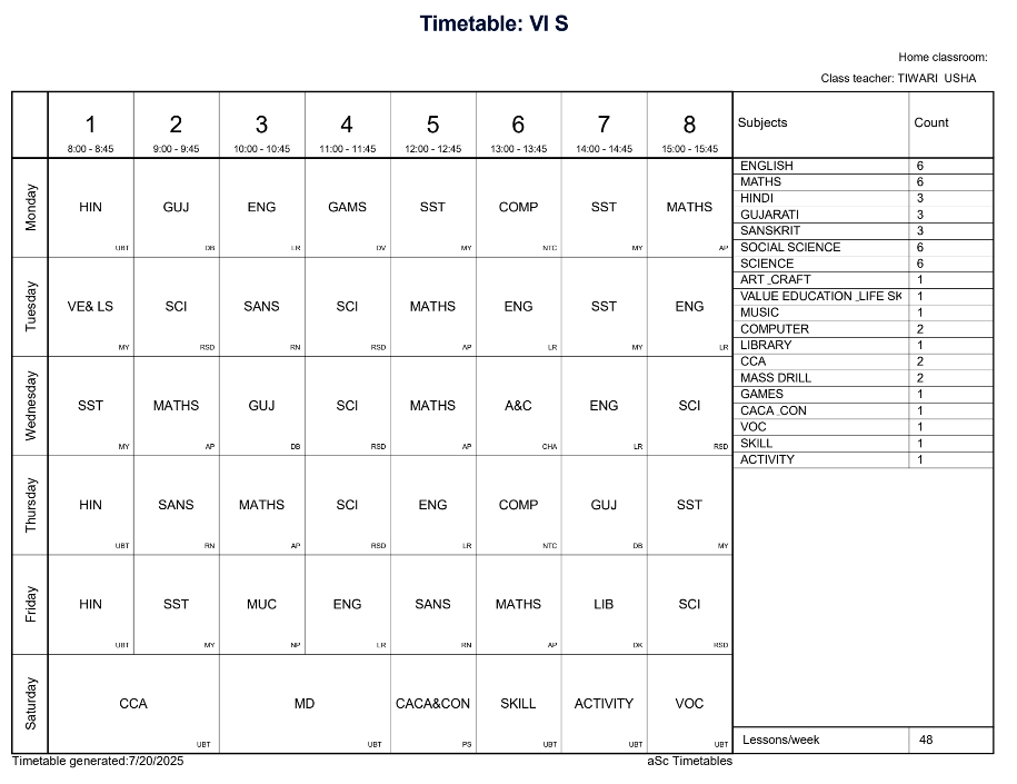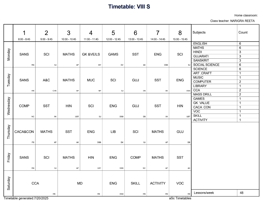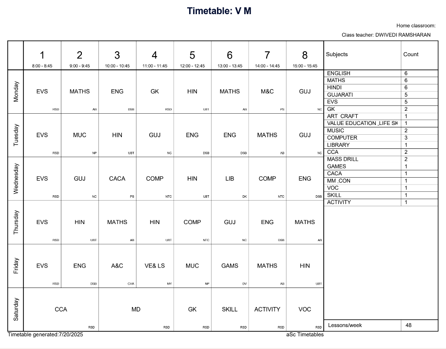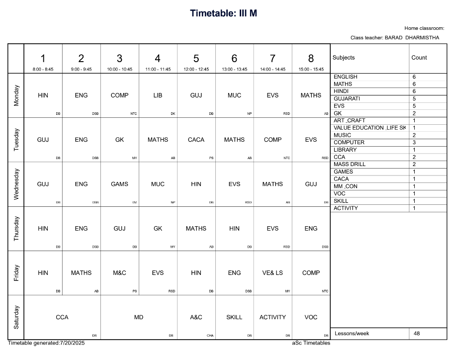 ABPS Jafrabad Time Table