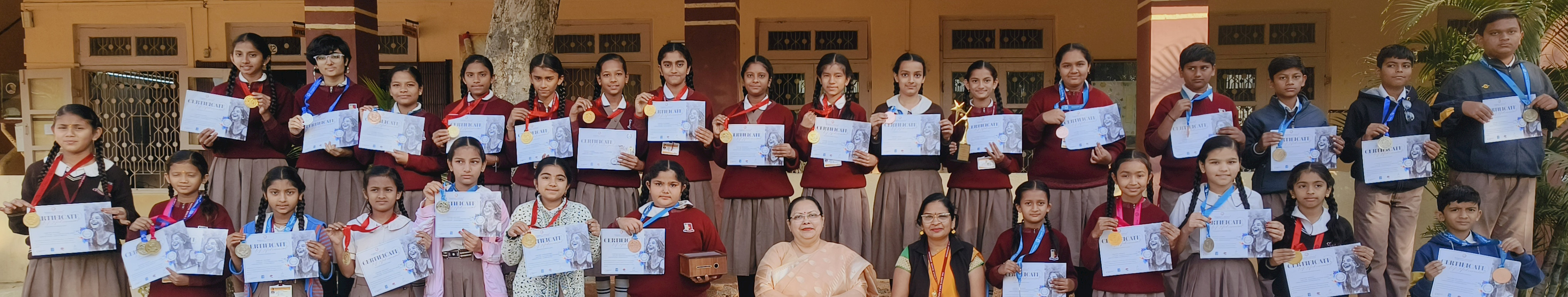 At the district level, notable achievements included Ayush Sharma (U-14 boys, badminton – 1st position, selected for state), Vishwam Pandya (U-17 boys, badminton – 3rd position, selected for state), and weightlifters Krish Baraiya and Nazim Juvariya securing first positions in their respective categories. State-level participation included Ayush Sharma (U-14 boys, badminton – 7th position, selected for pre-national camp), Vishwam Pandya (U-17 boys, badminton), and weightlifters Krish Baraiya (56 kg – 5th position) and Nazim Juvariya (79 kg – 4th position). Students also actively participated in Khel Mahakumbh events, including volleyball, tug of war, chess, kho-kho, badminton, skating, and football. Notably, Devarth Dad excelled in the ABG Chess Tournament, securing 2nd position at the zonal level and representing at the national level. Inter-house sports activities were conducted throughout the year, including Yoga Day, Investiture Ceremony, Throwball, Volleyball, Carom, Chess, Tug of War, Kabaddi, and culminating with the annual Sports Day celebration in December 2025.
