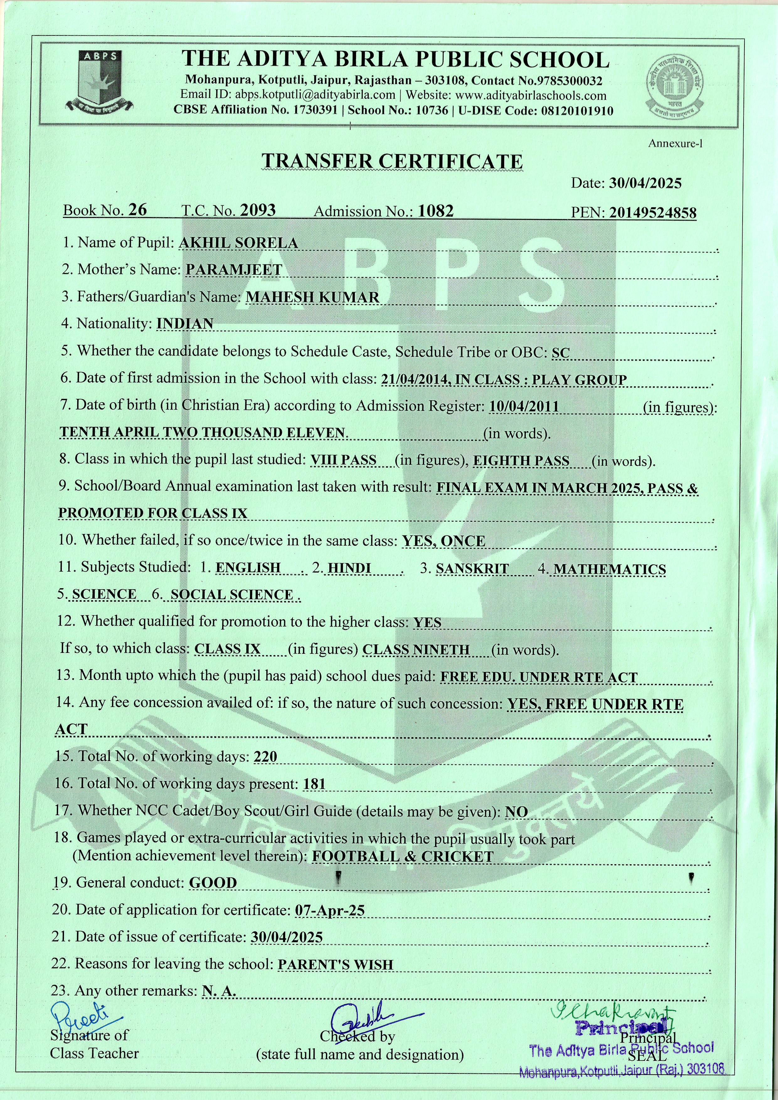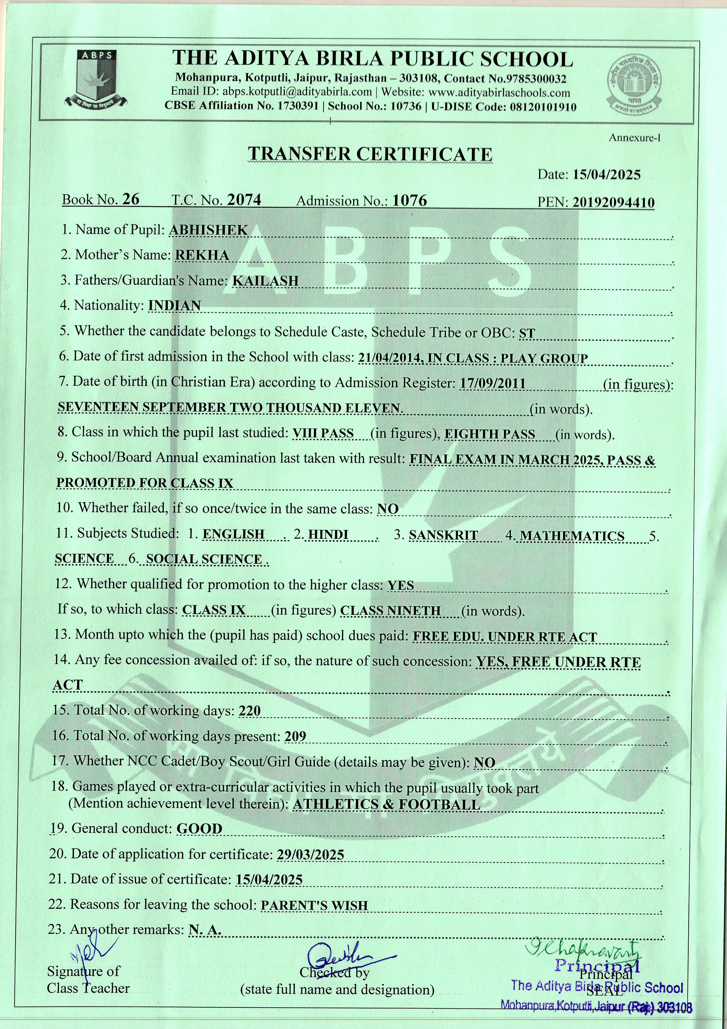| Abhishek | 8th | 17-09-2011 | Click To Show |