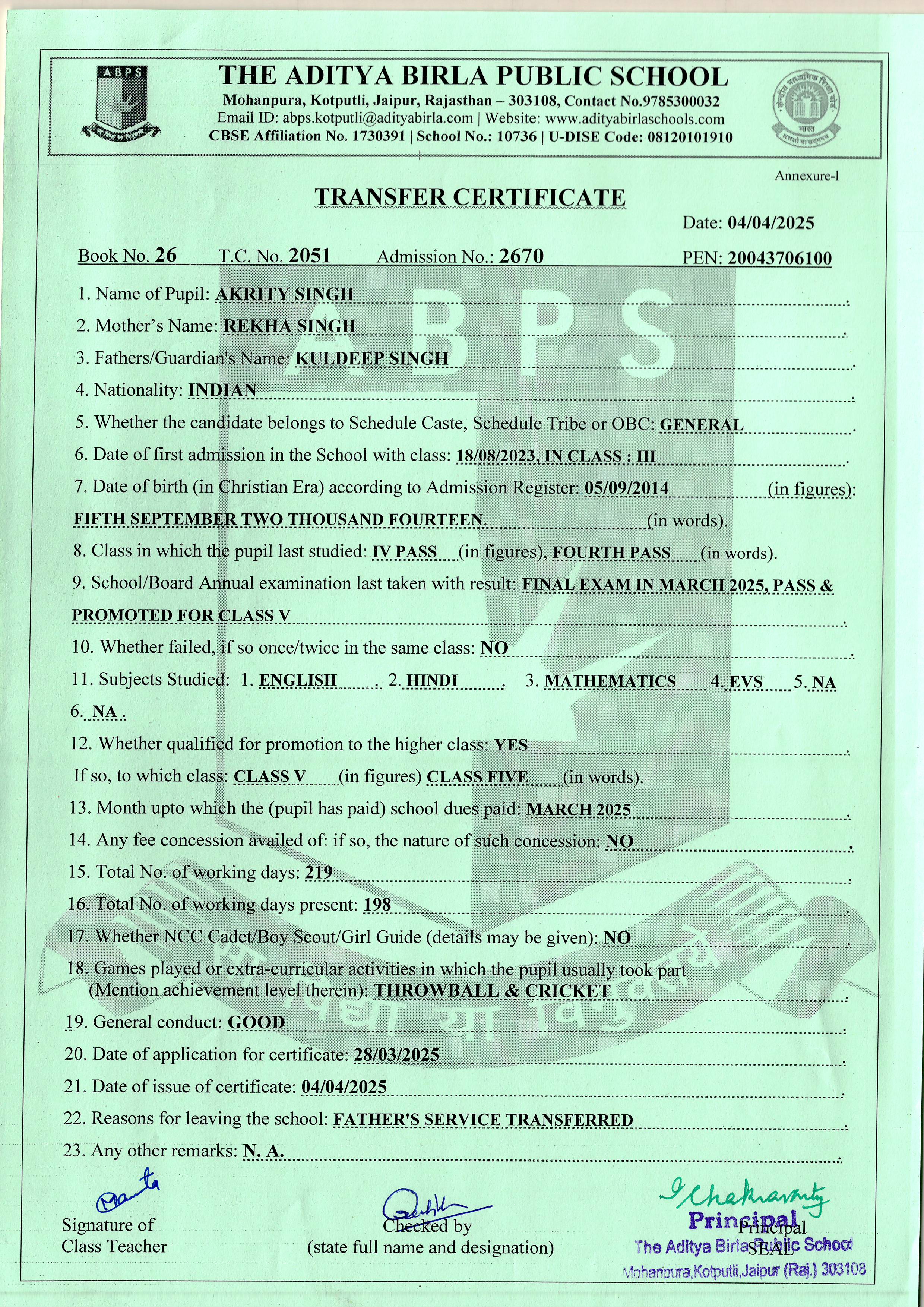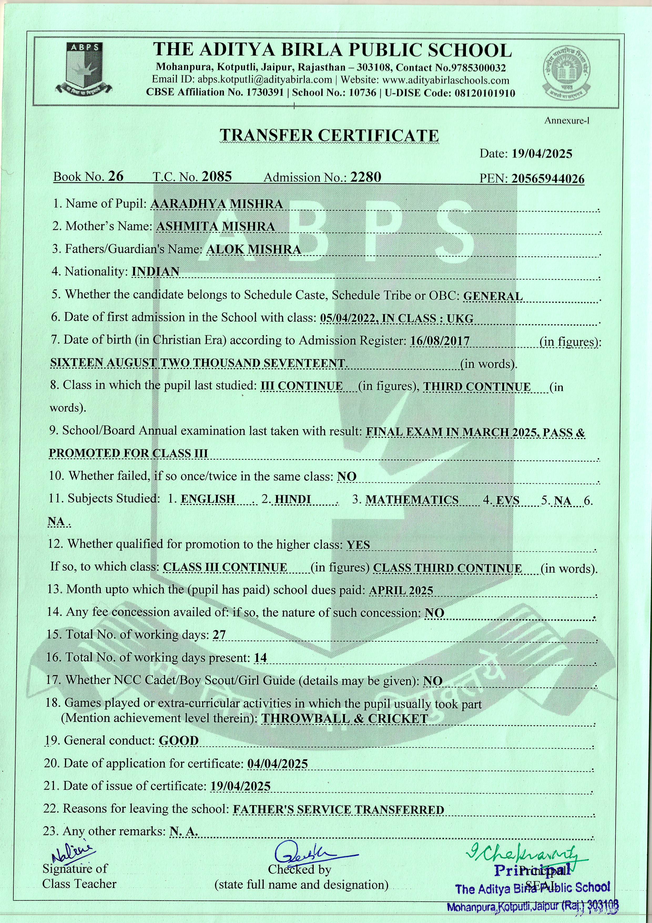 | Aardhya Mishra | 3rd | 16-08-2017 | Click To Show |