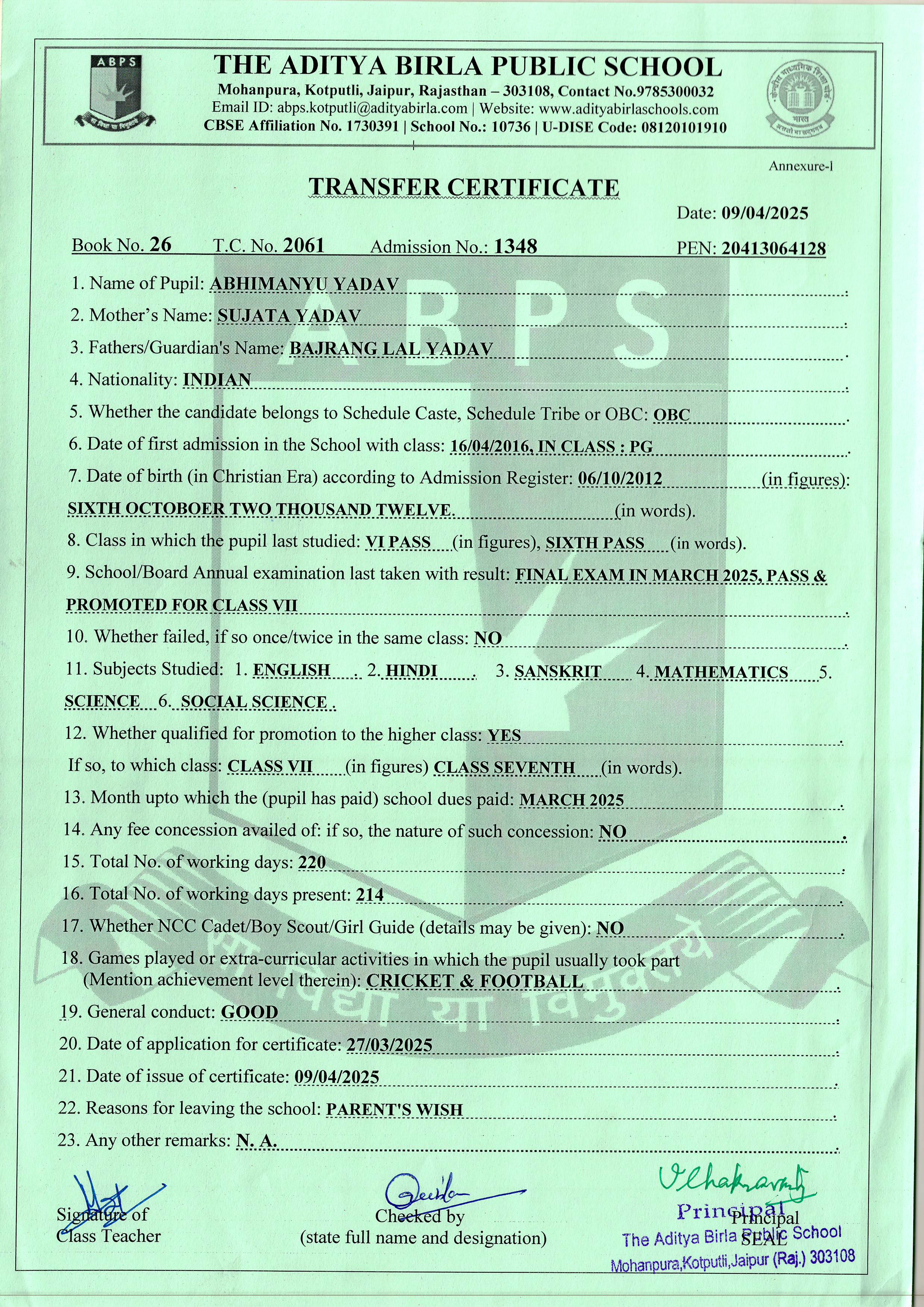 | Abhimanyu Yadav | 6th | 06-10-2012 | Click To Show |