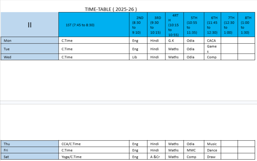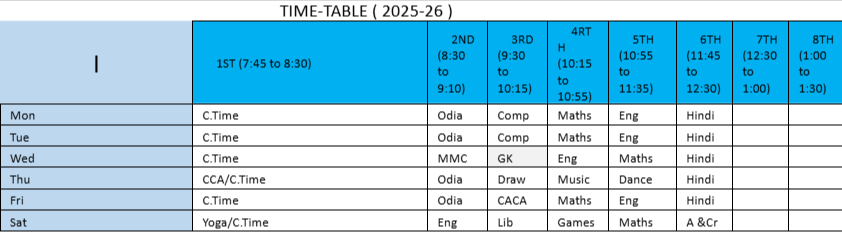 ABPS Lapanga Time Table