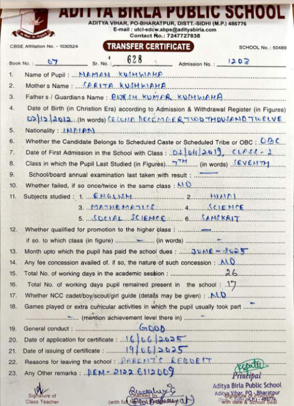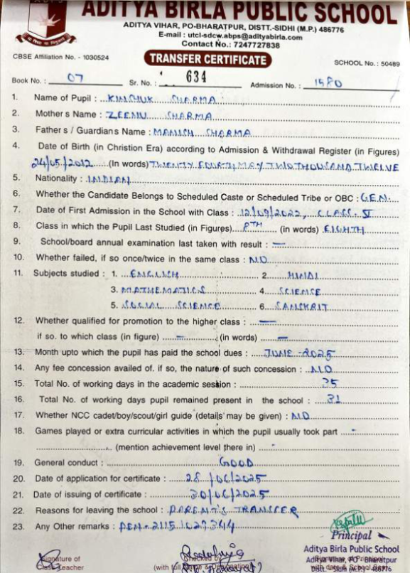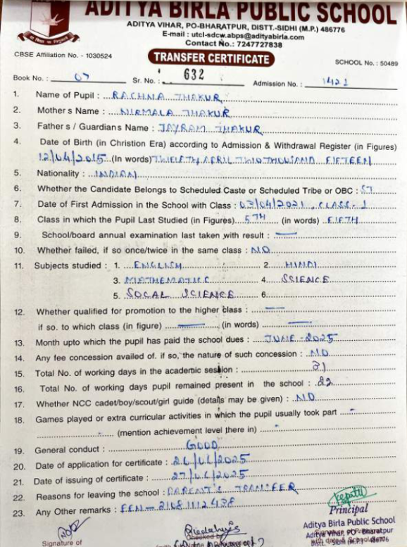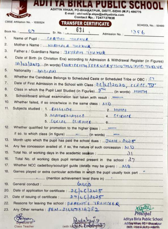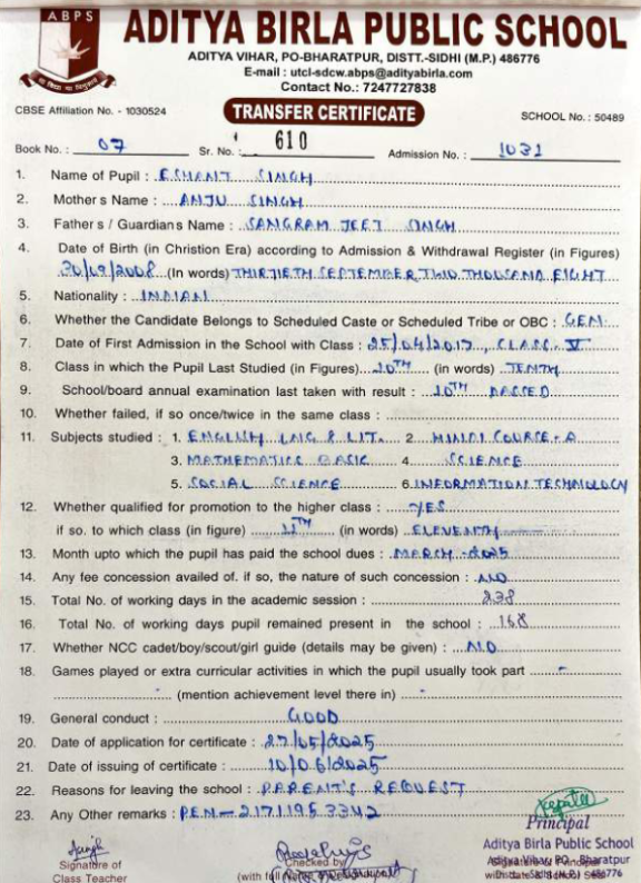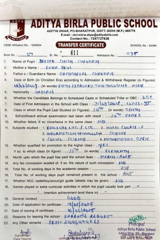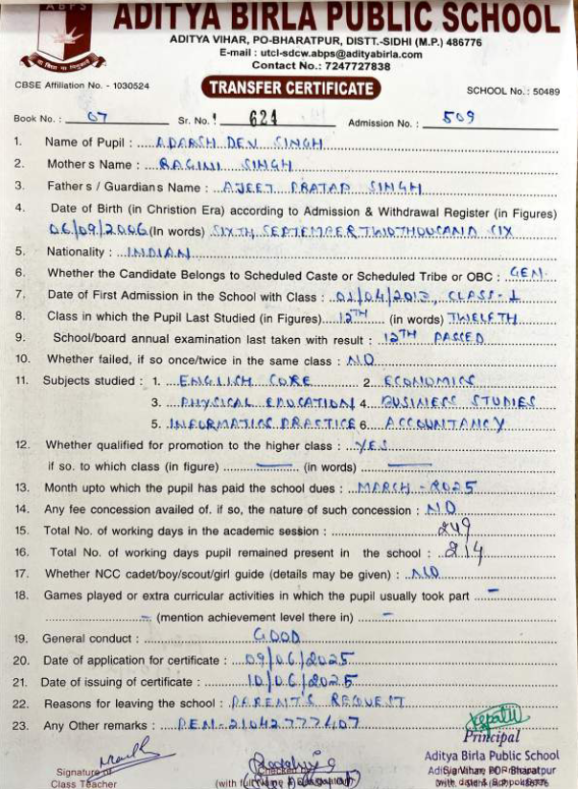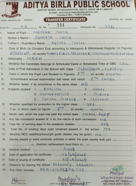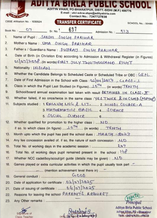| Sakshi Singh Parihar | 10th | 01-07-2008 | Click To Show |