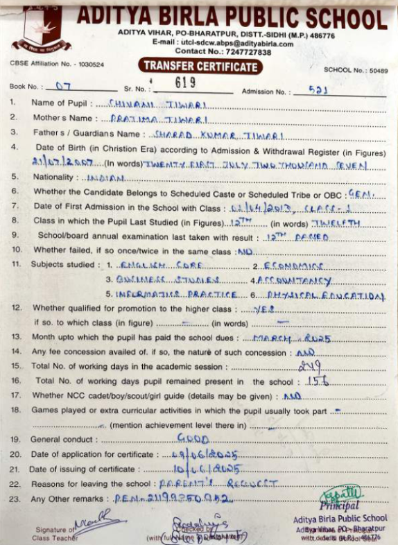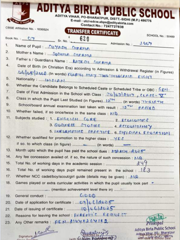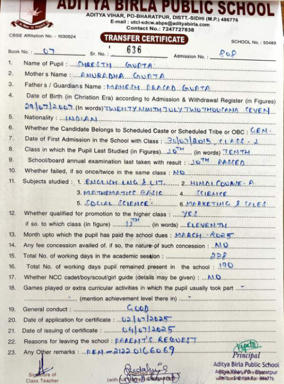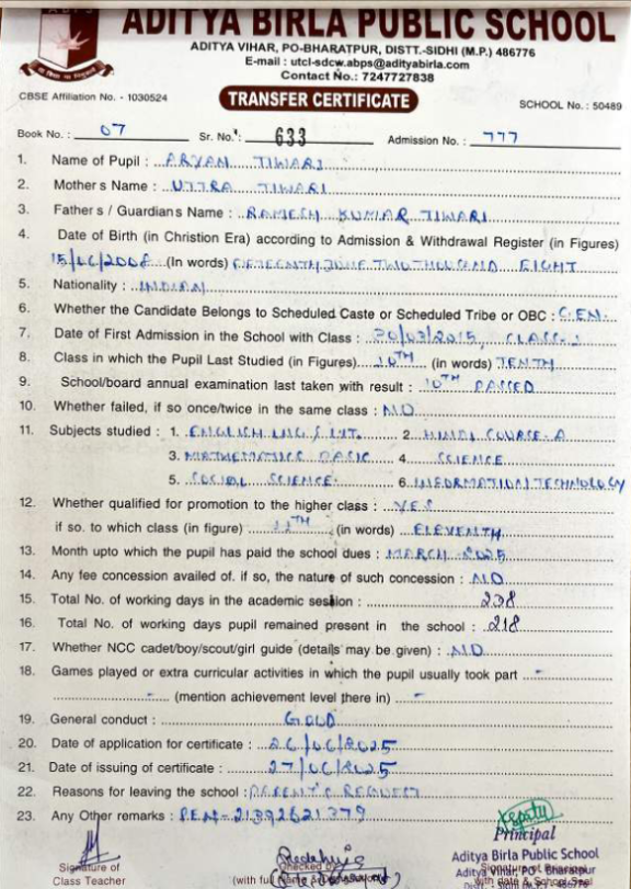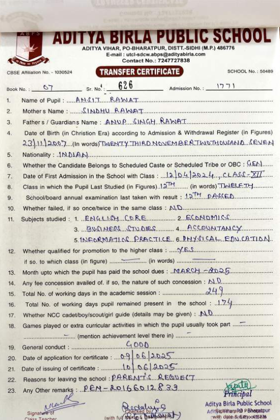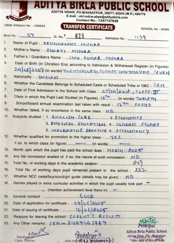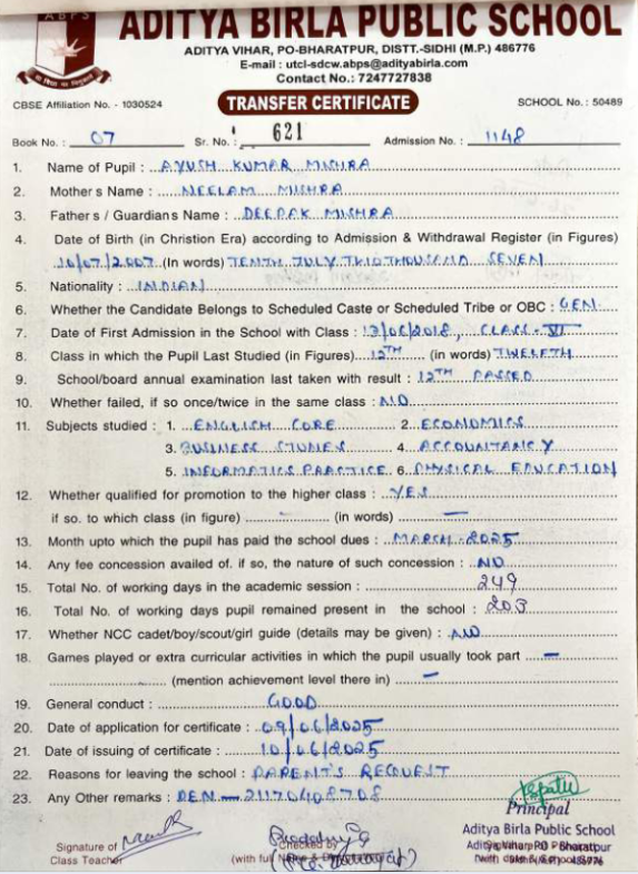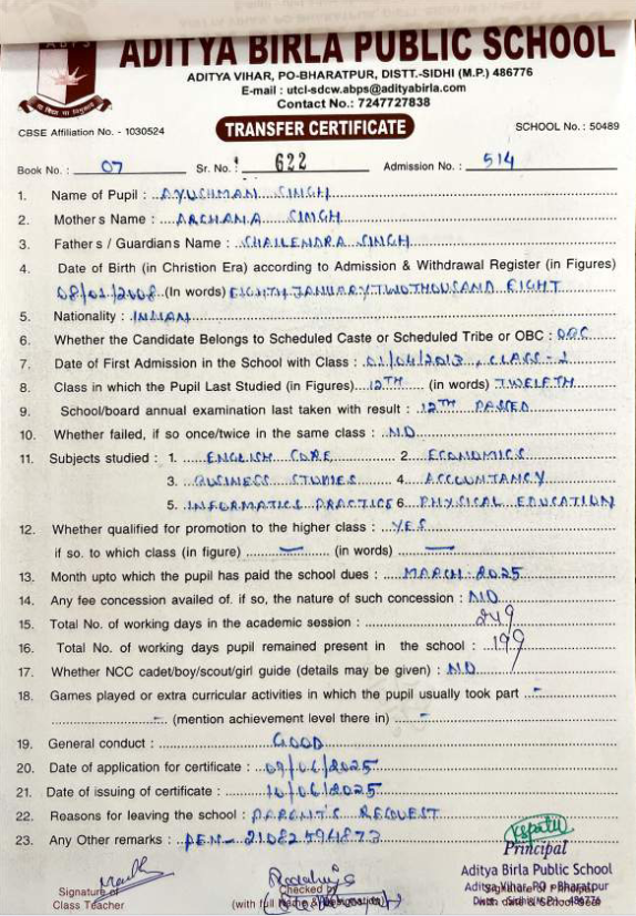| Ayush Kumar Mishra | 12th | 10-07-2007 | Click To Show |
