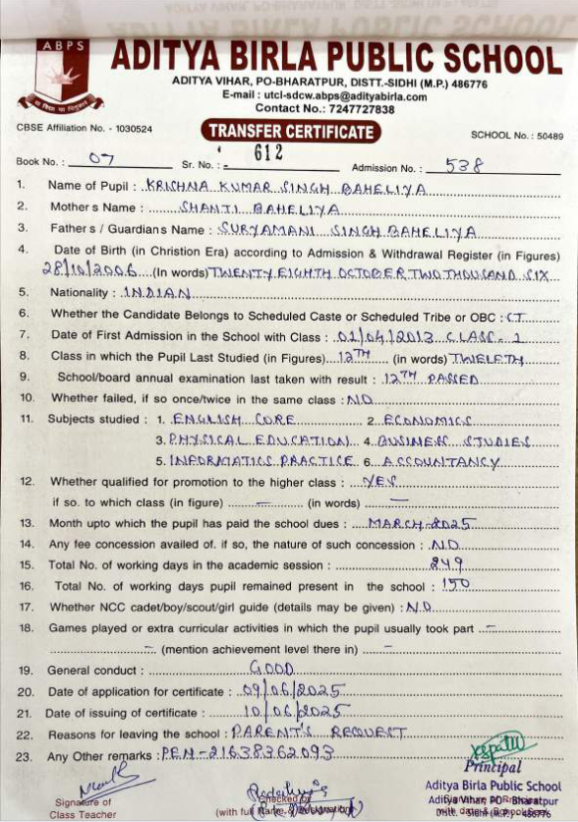 | Krishna Kumar Singh Baheliya | 12th | 28-10-2006 | Click To Show |