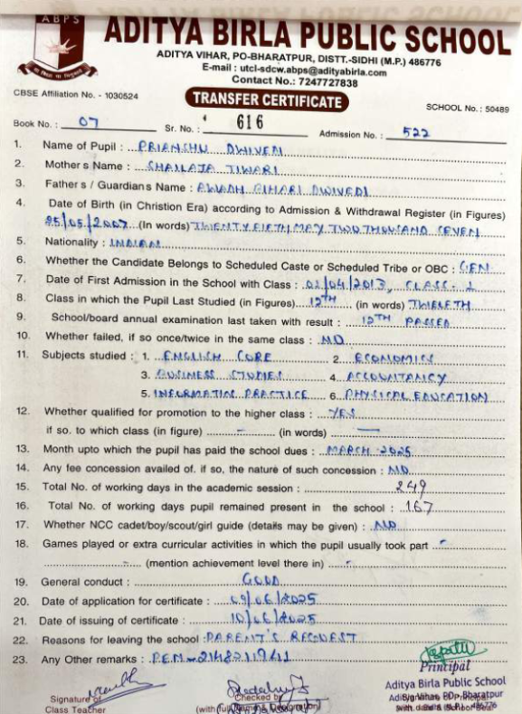 | Priyanshu Dwivedi | 12th | 25-05-2007 | Click To Show |