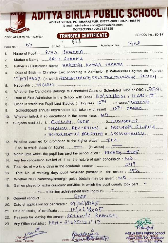| Riya Sharma | 12th | 17-07-2007 | Click To Show |