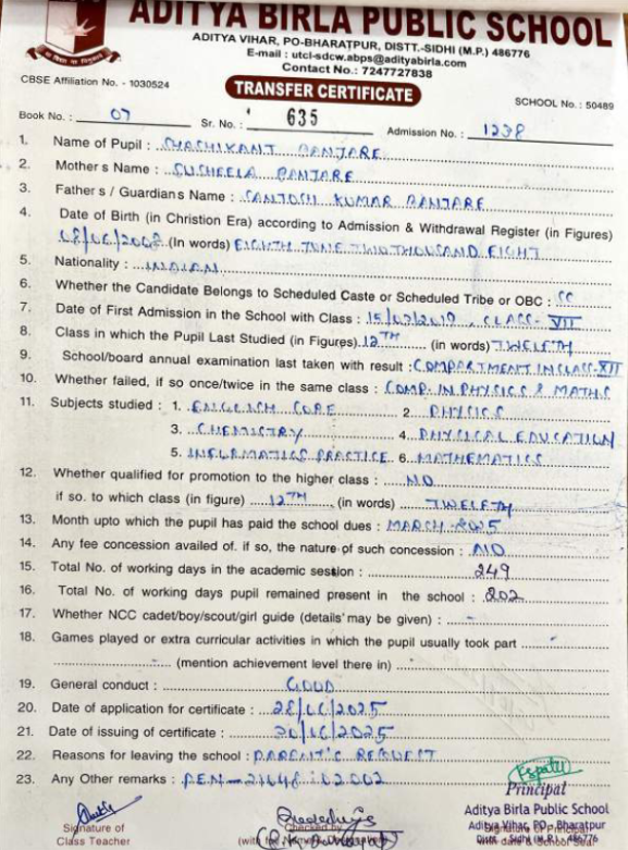| Shashikant Banjare | 12th | 08-06-2008 | Click To Show |