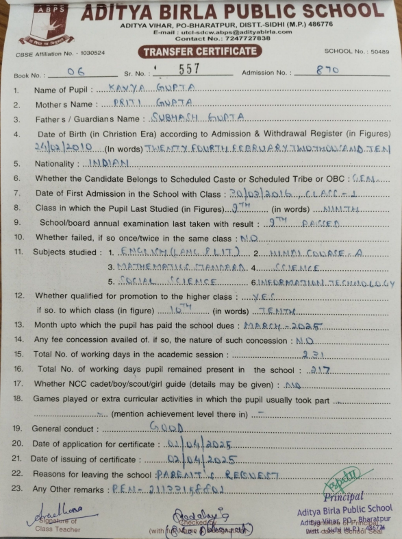 | Kavya Gupta | 10th | 24-02-2010 | Click To Show |