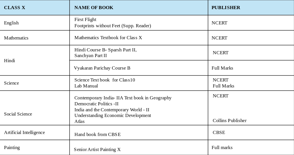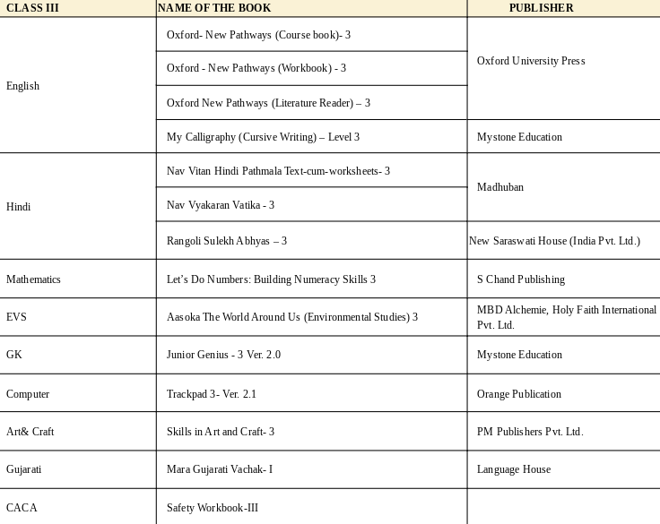 Class wise Book list