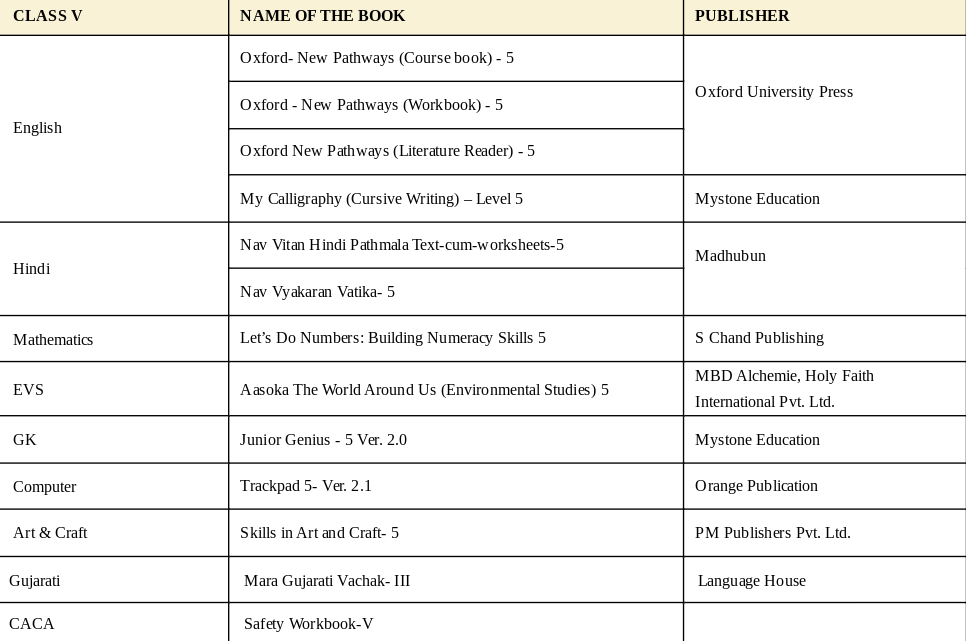 At ABPS Veraval, our booklist framework is thoughtfully curated to provide students with the right blend of academic knowledge, skills, and values at every stage of their schooling. The class-wise booklist is more than a catalogue of textbooks — it is a structured guide that supports progressive learning, encourages conceptual clarity, and nurtures a love for learning across subjects.