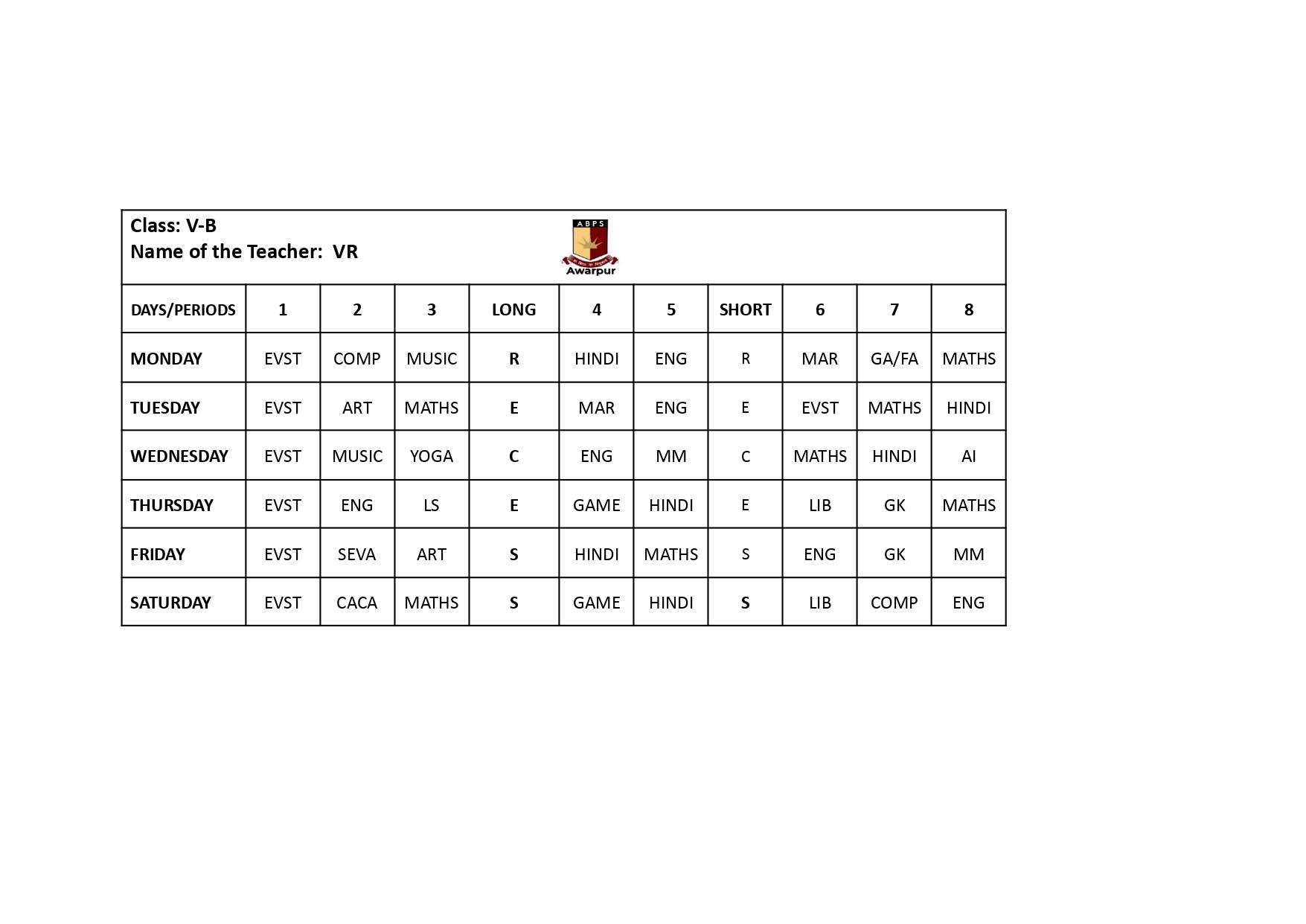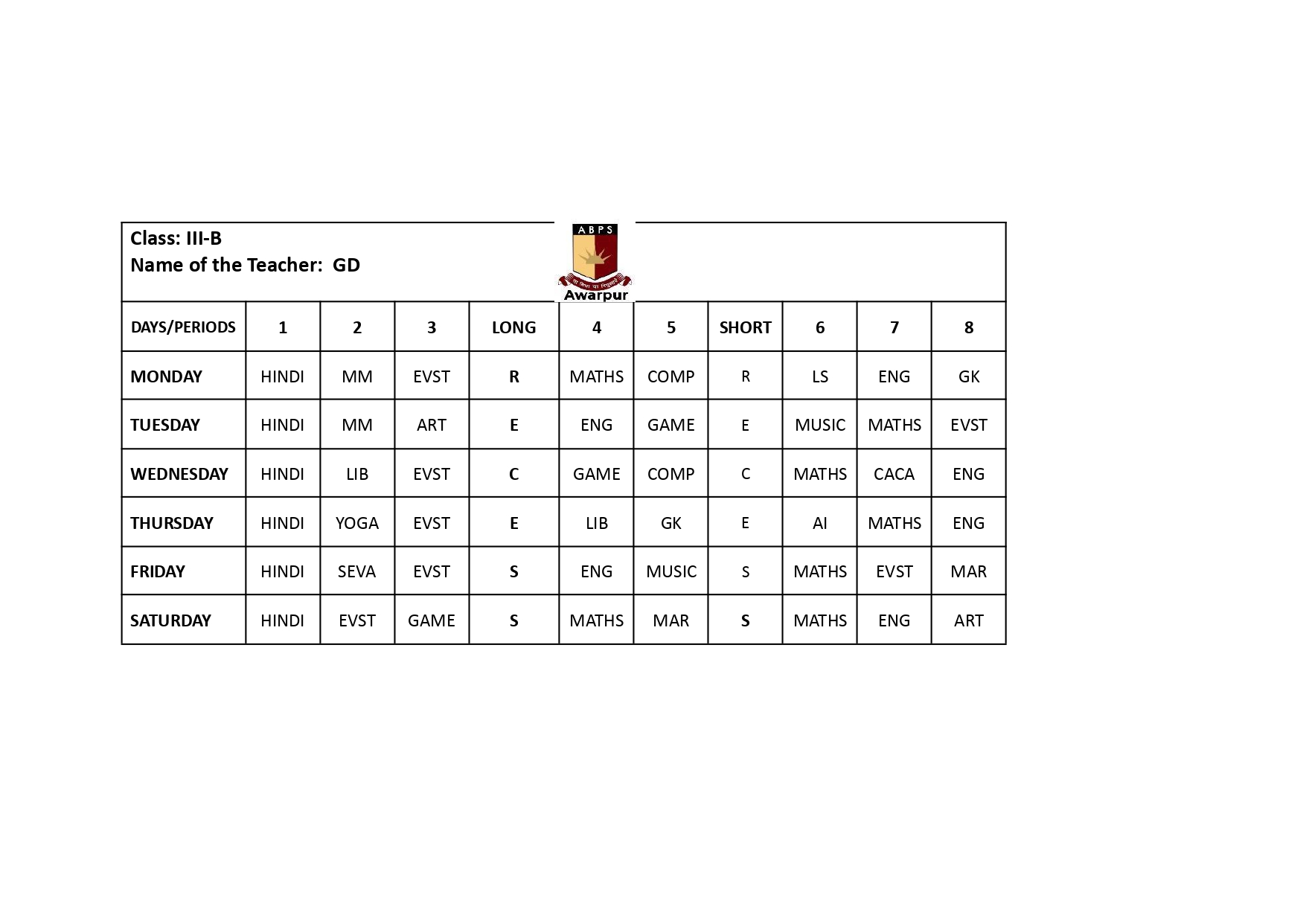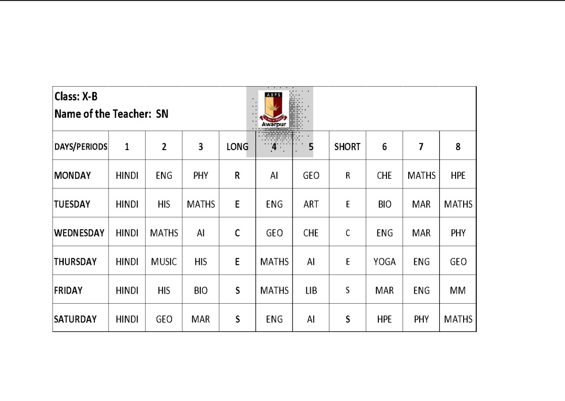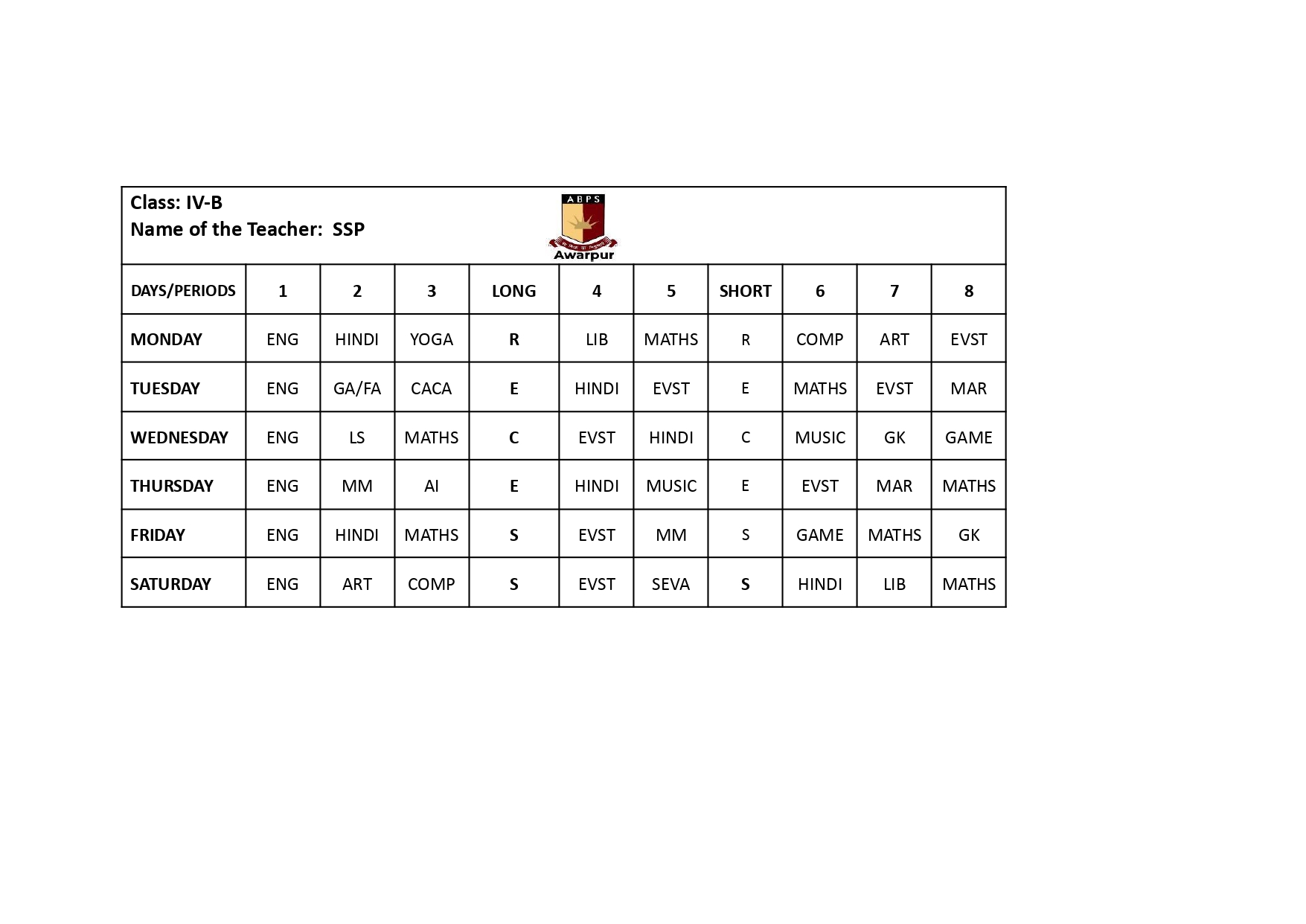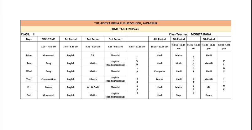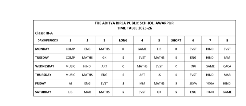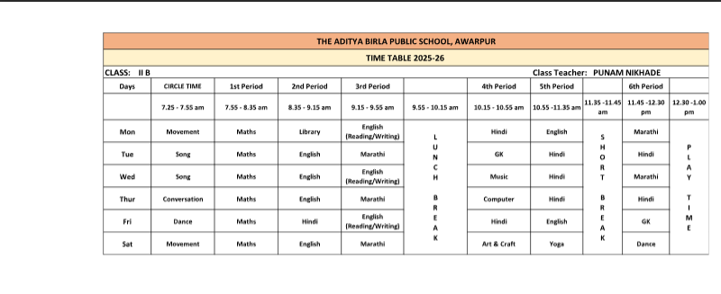 ABPS Awarpur Time Table