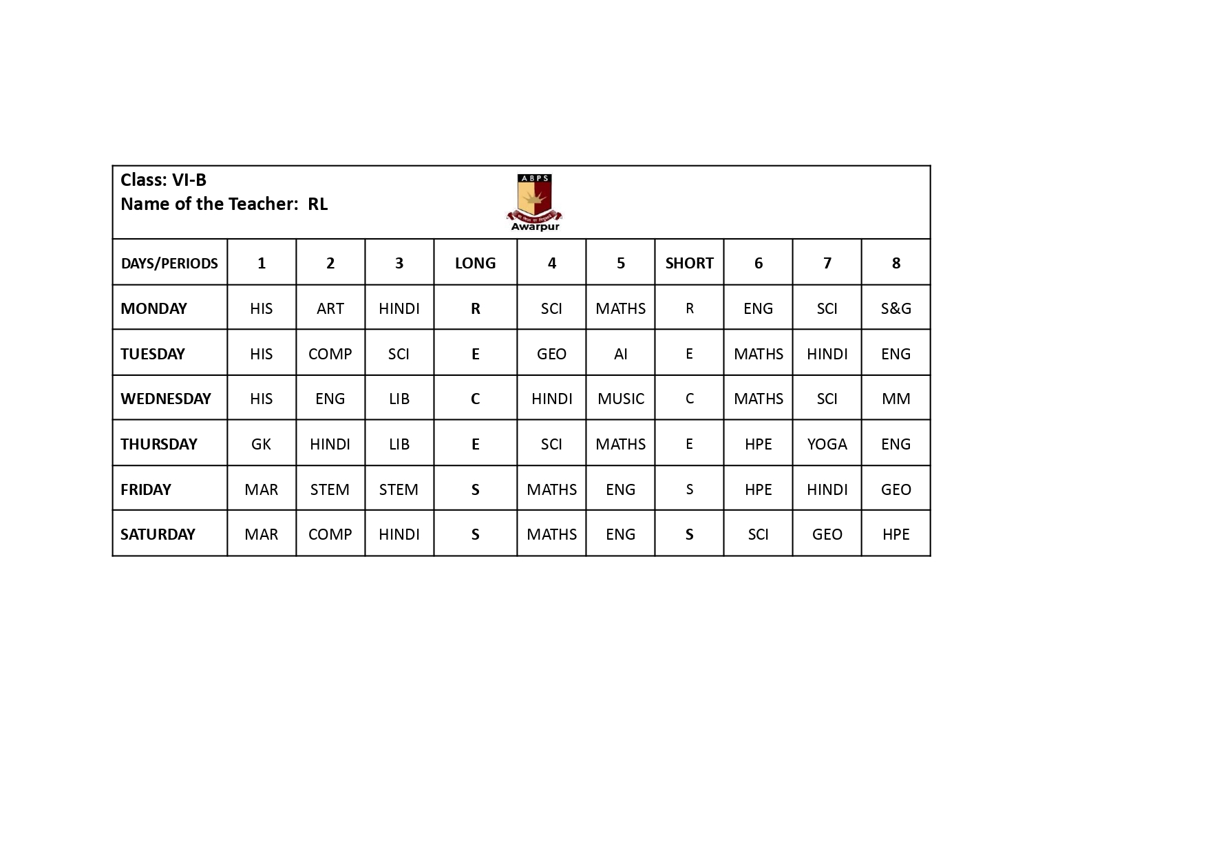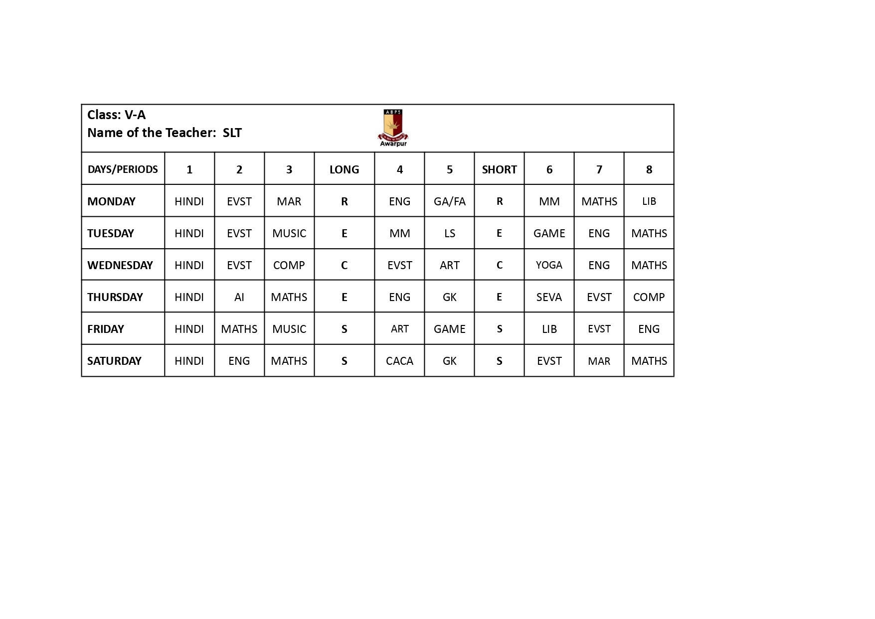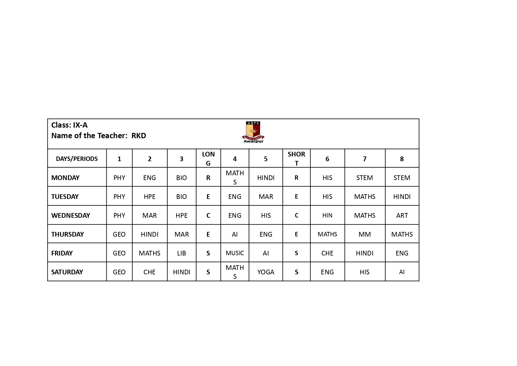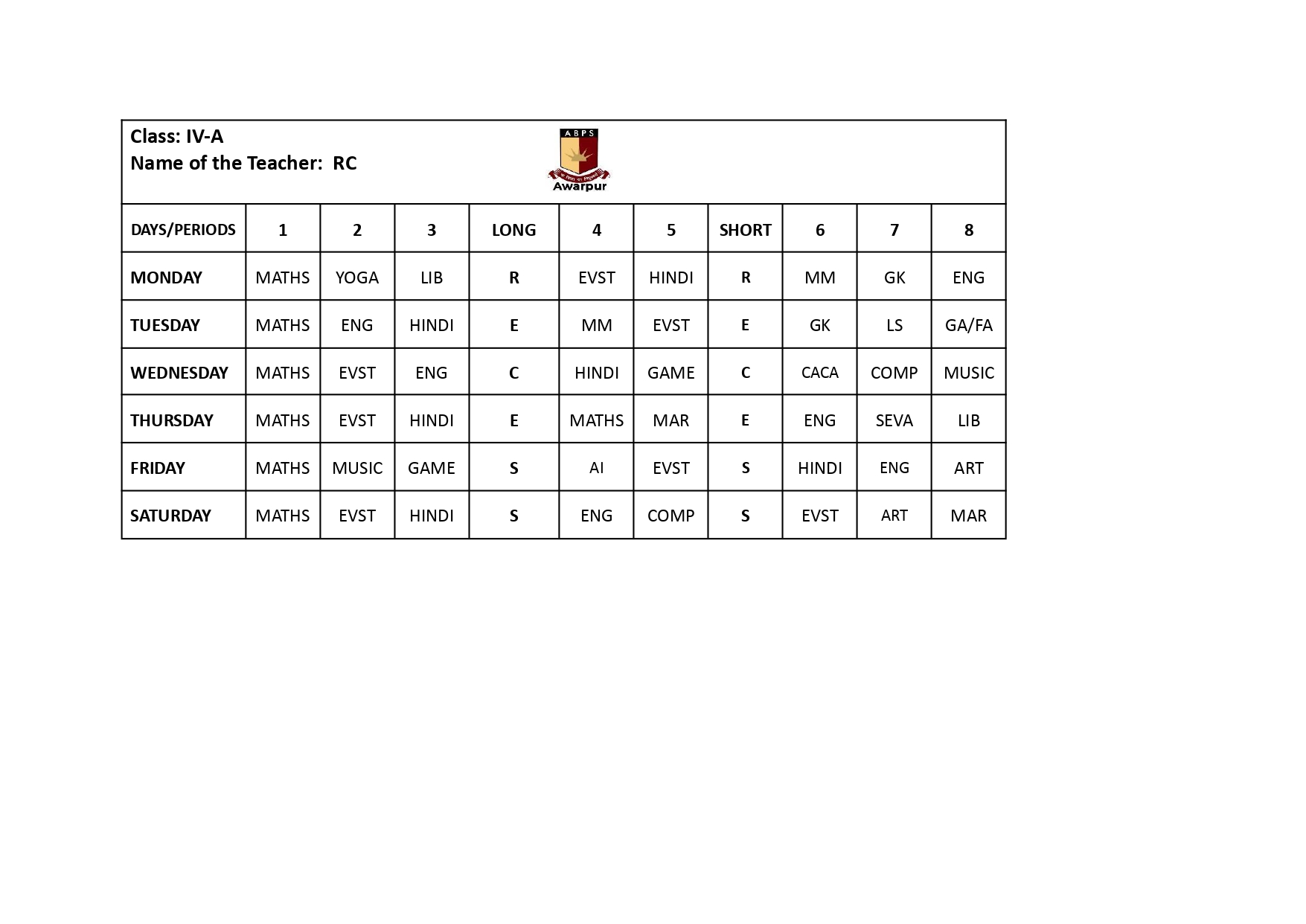 ABPS Awarpur Time Table