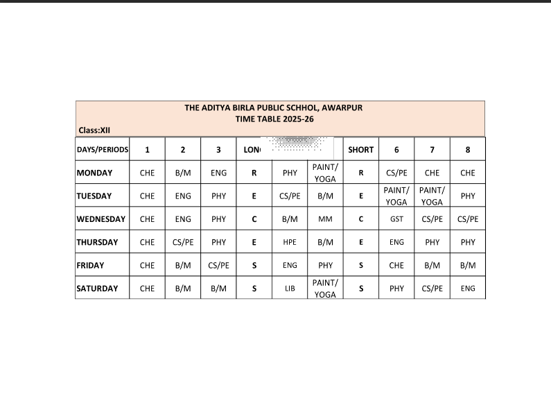The daily schedule at ABPS Awarpur is planned to give students the right balance of study, activities, and relaxation. It helps them stay focused in class, enjoy co-curricular opportunities, and develop healthy habits. Our timetable builds discipline while supporting overall growth and well-being.