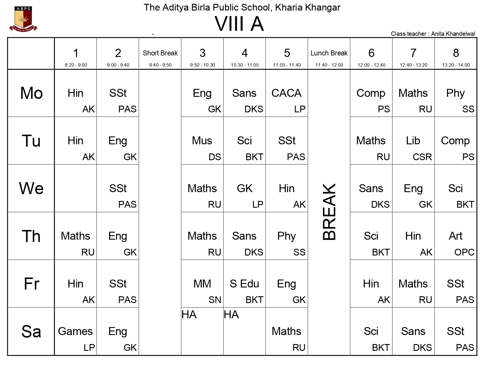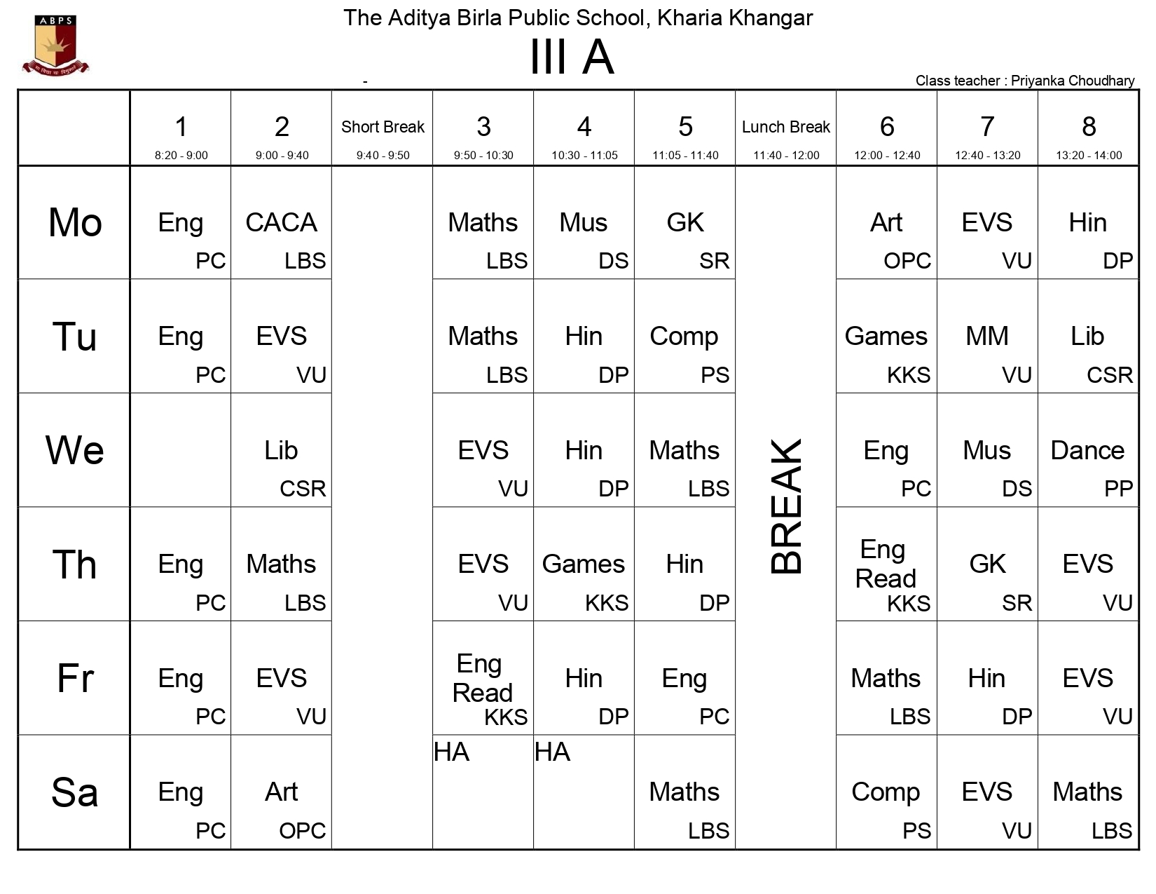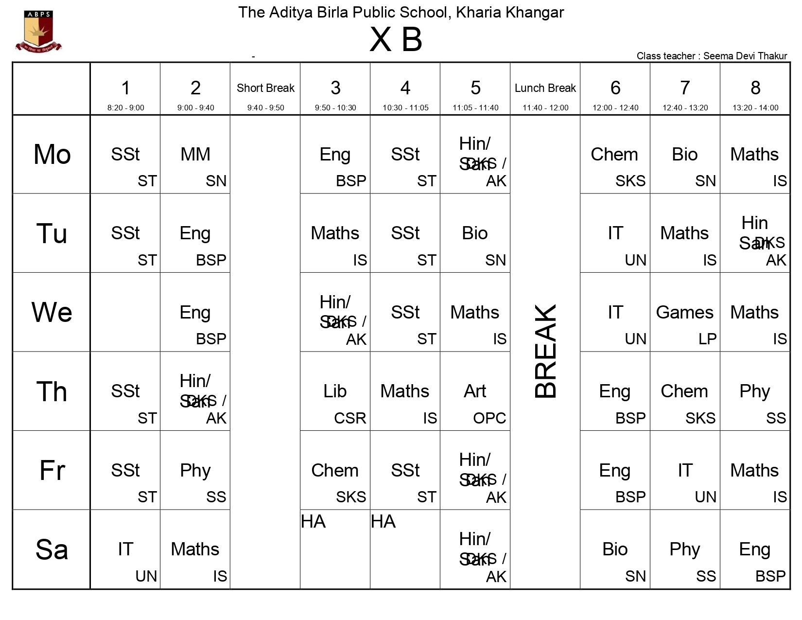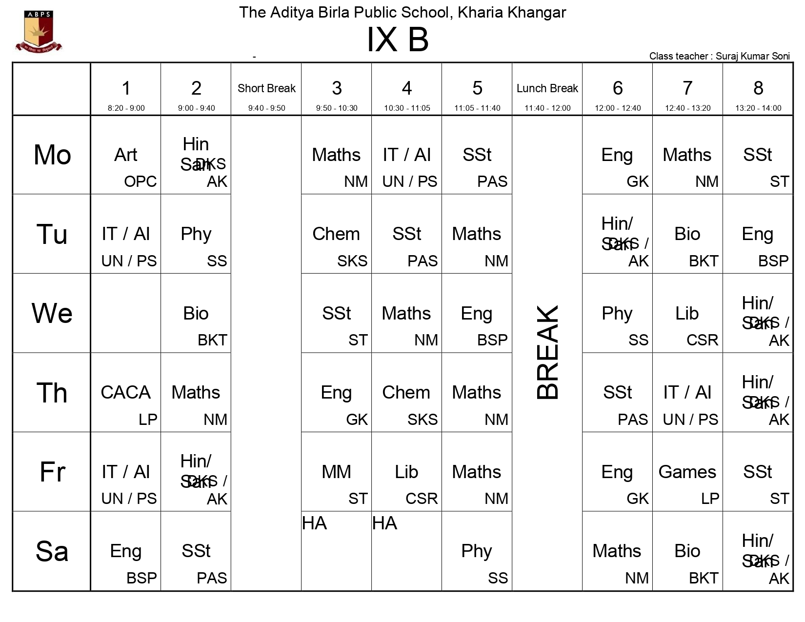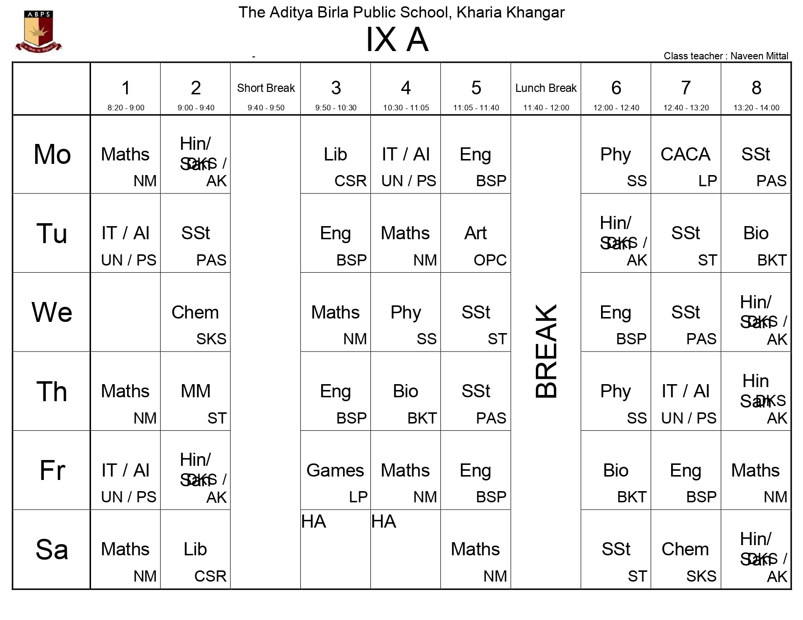 The Class-Wise Timetable ensures a structured and balanced academic day, fostering discipline and optimal learning. Designed to accommodate core subjects, co-curricular activities, and breaks, it promotes productivity while prioritizing student well-being. Follow this schedule to stay organized, manage time effectively, and achieve academic success.