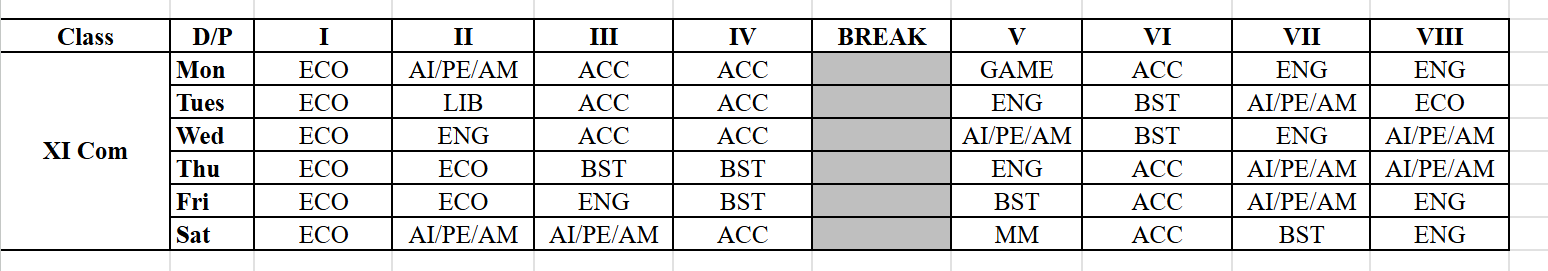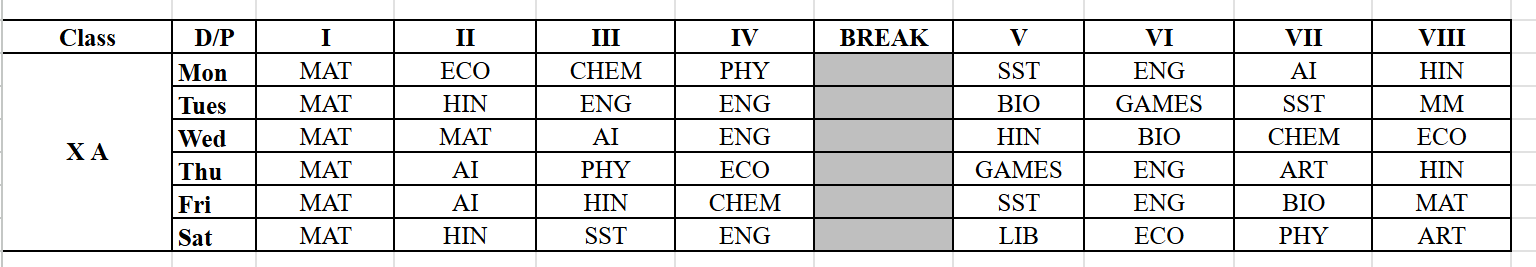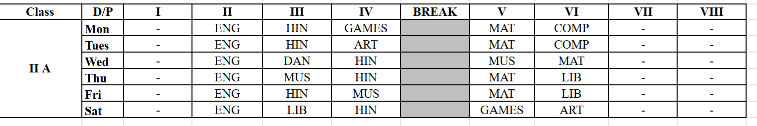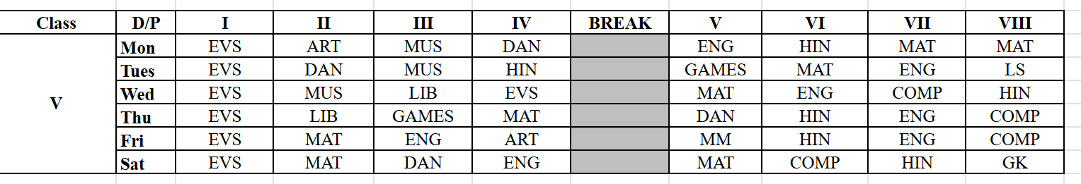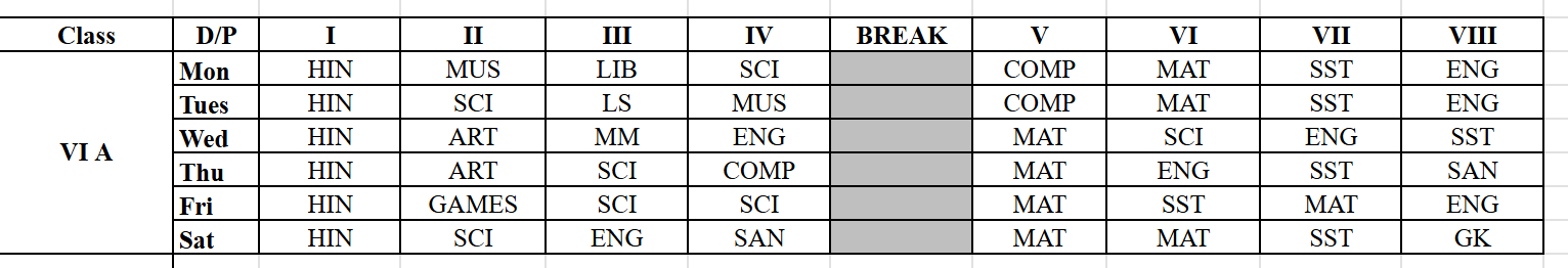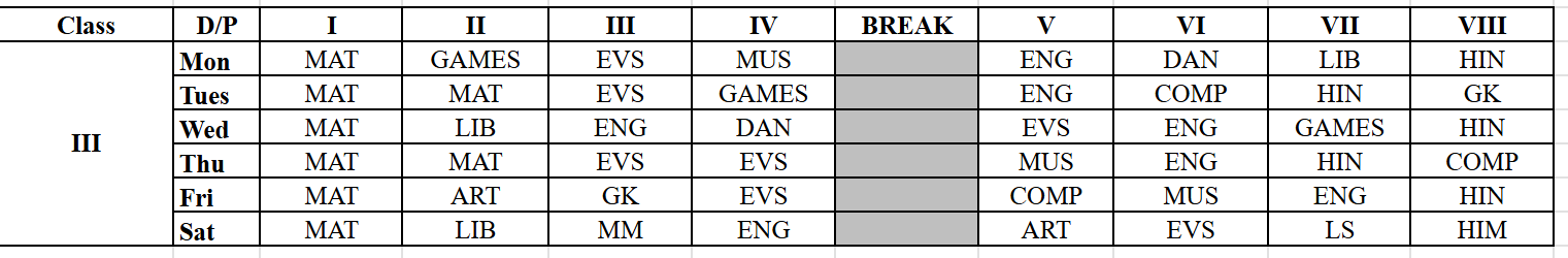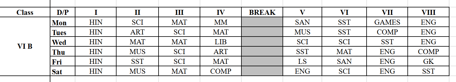 Our Time Table