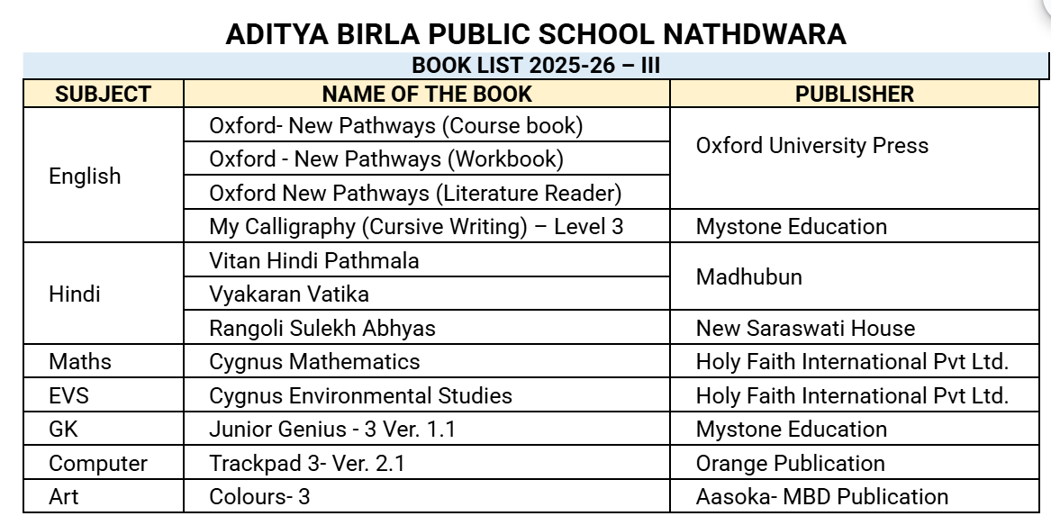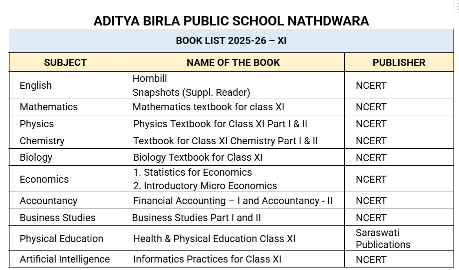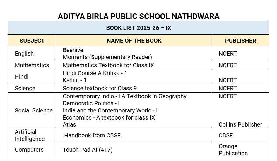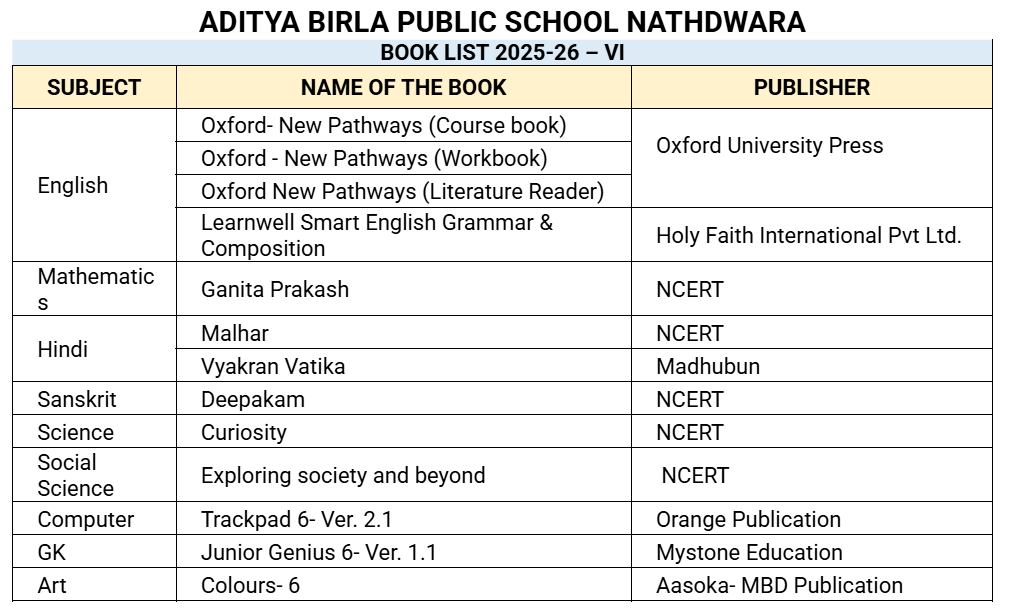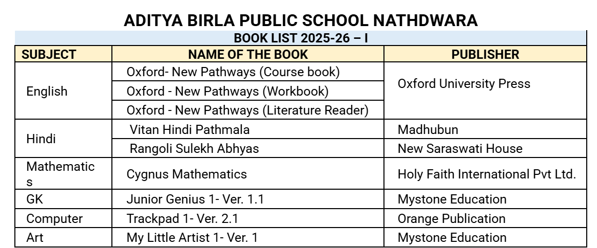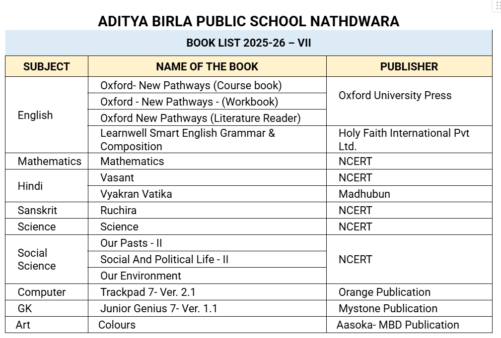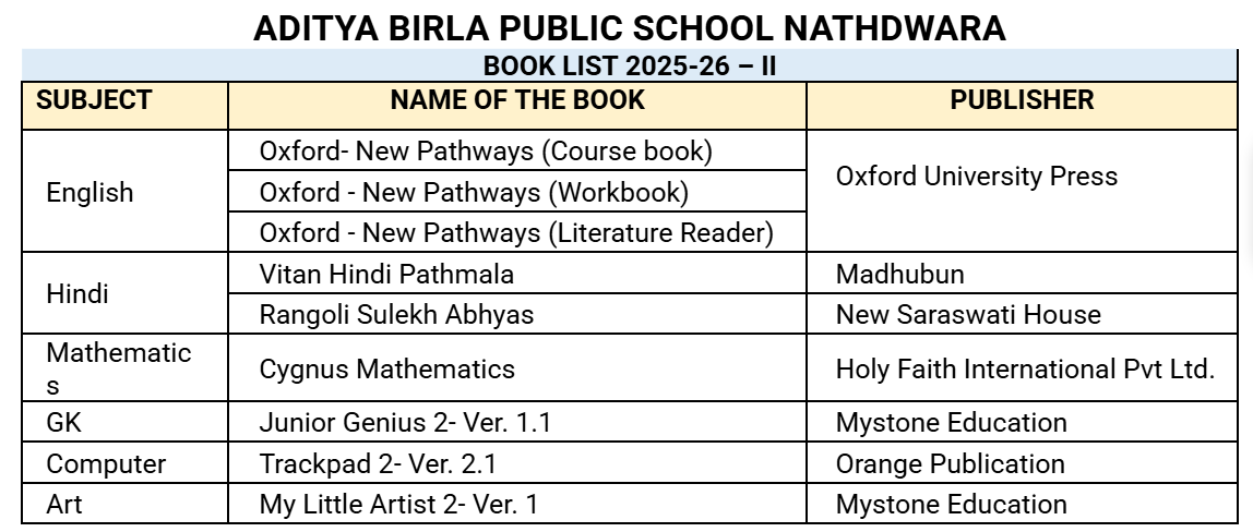 ADITYA BIRLA PUBLIC SCHOOL NATHDWARA 2025-26