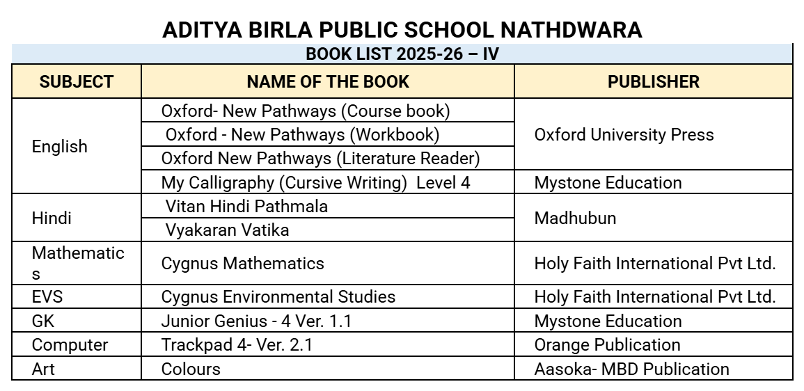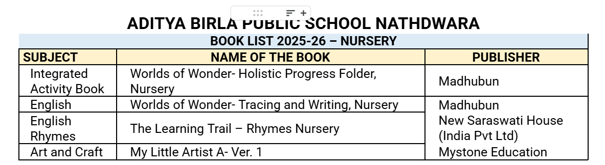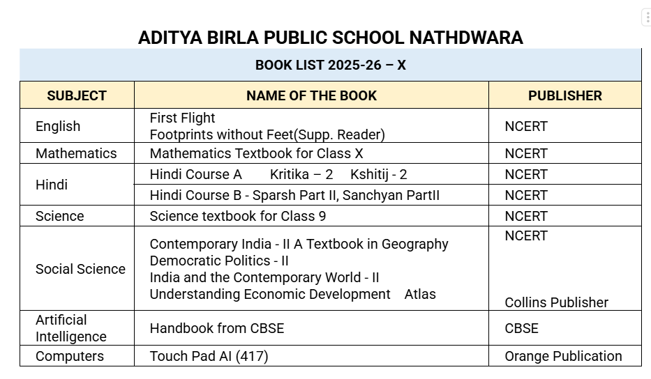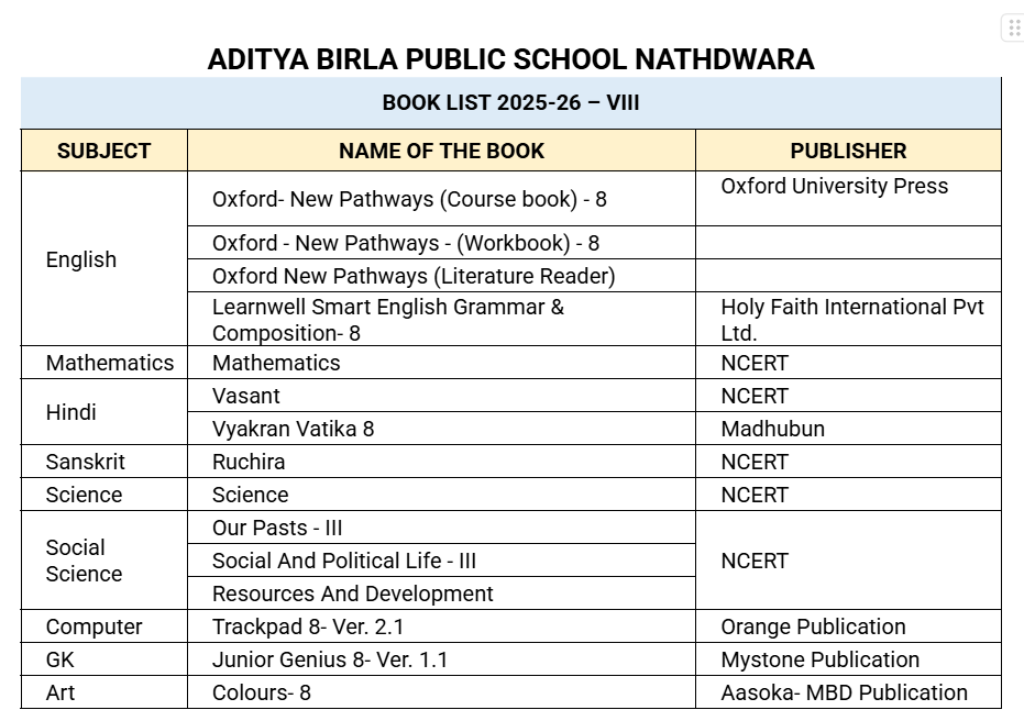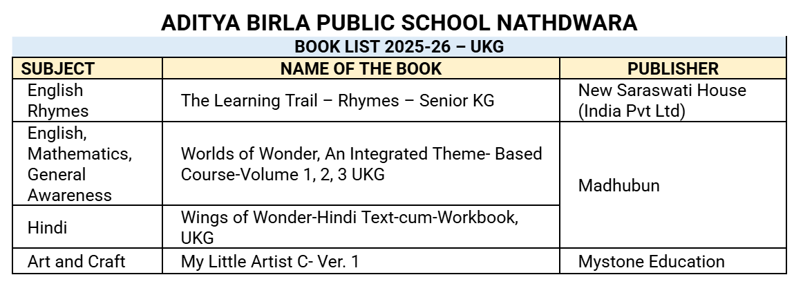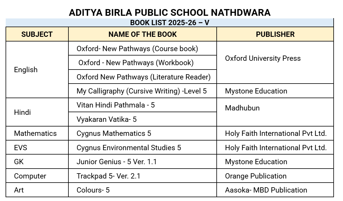 ADITYA BIRLA PUBLIC SCHOOL NATHDWARA 2025-26