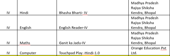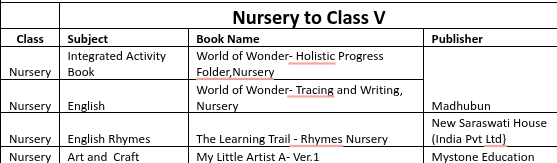 Class wise Book list