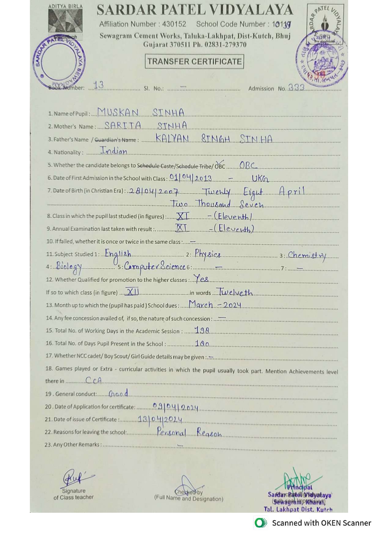 Muskan sinha XII 28-04-2007 Click To Show