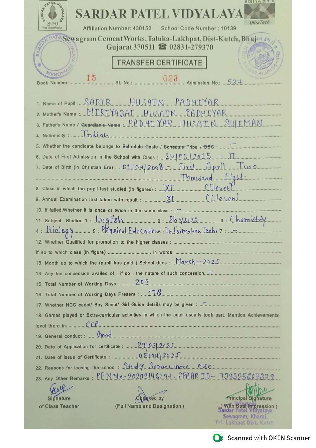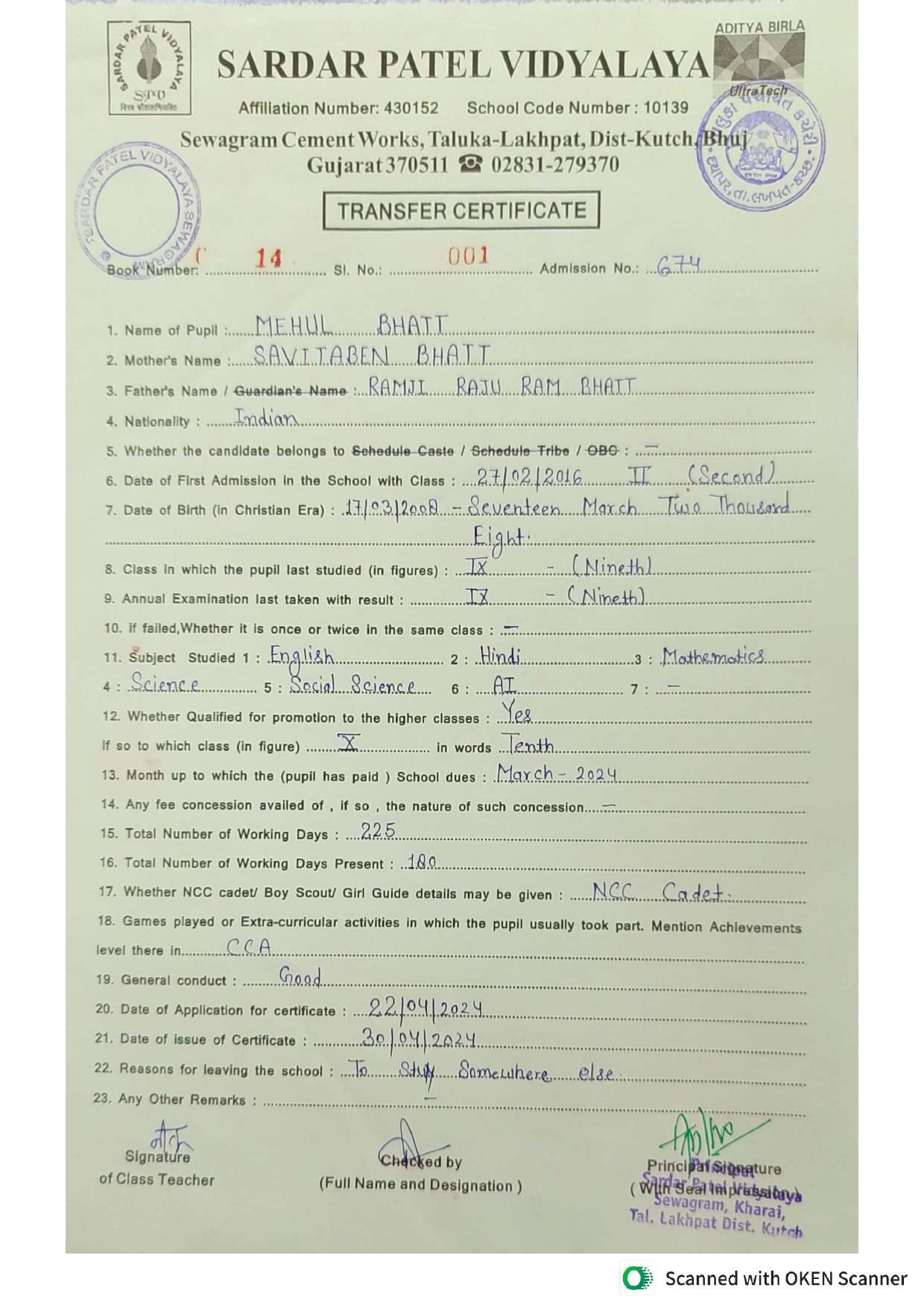 Transfer Certificate (TC) Download