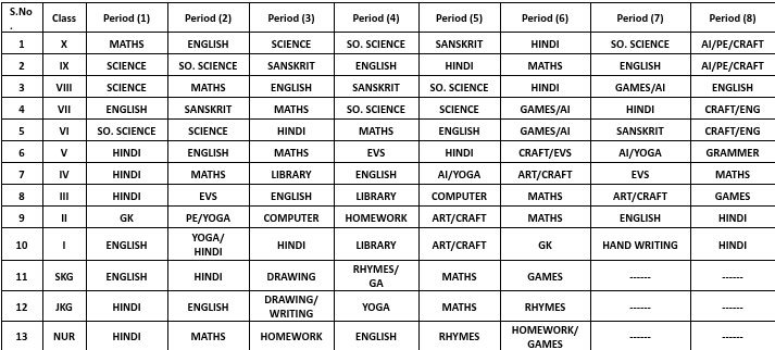 The daily schedule at SVN Maihar is planned to give students the right balance of study, activities, and relaxation. It helps them stay focused in class, enjoy co-curricular opportunities, and develop healthy habits. Our timetable builds discipline while supporting overall growth and well-being.